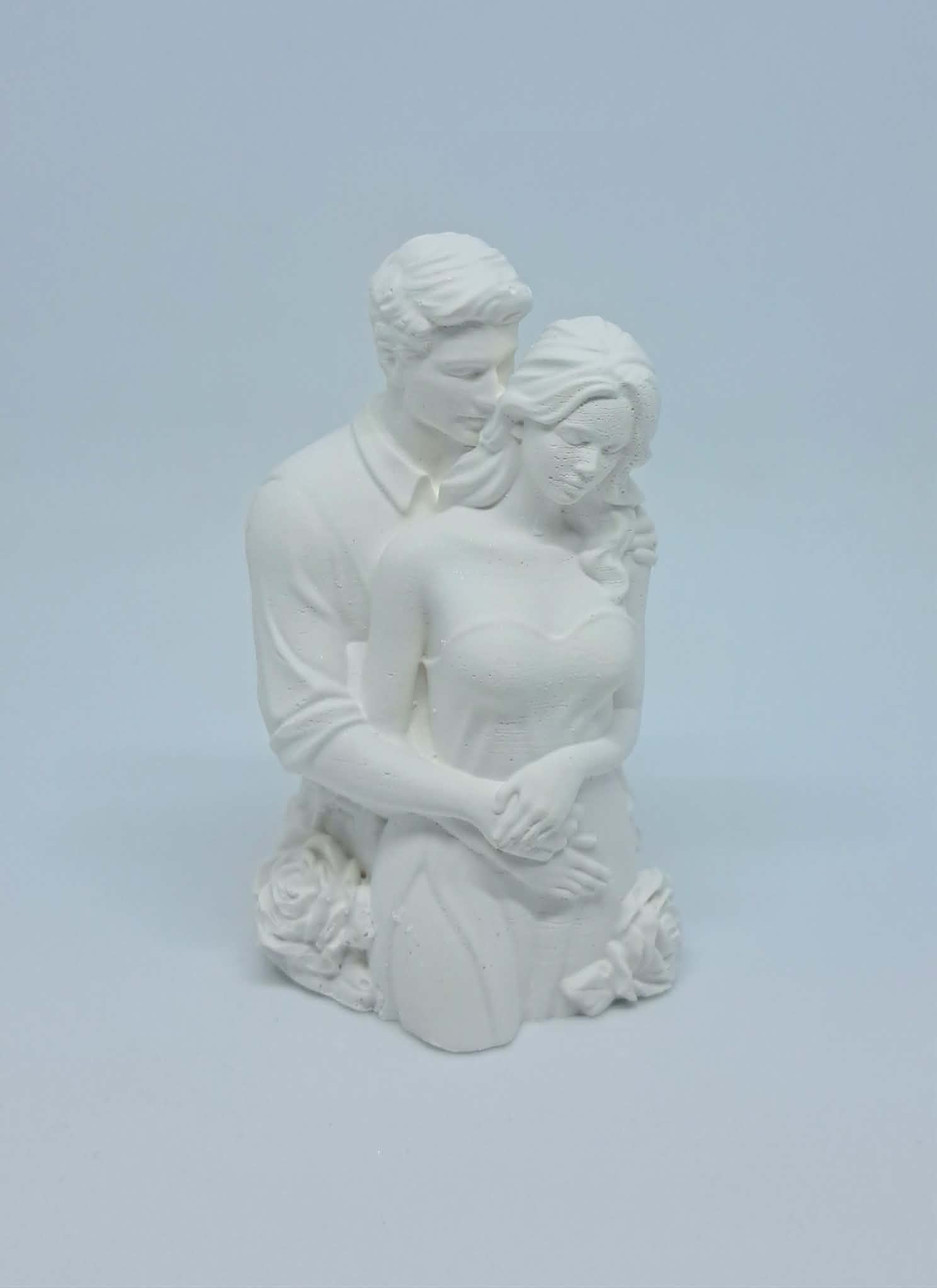 Dwoje zakochanych – mężczyzna obejmujący kobietę , przyozdobiony różami. Jeśli w Twoim zamyśle jest stworzenie Anioła z parą to świetnie trafiłeś. Mimo, iż odlew jest niewielki to wykonany z drobnymi szczegółami. Można go malować farbami, spreyem czy też pisakami akrylowymi. Wszystko według własnej inwencji twórczej. Pobudź wyobraźnię i stwórz swoje niepowtarzalne dzieło z parą zakochanych.