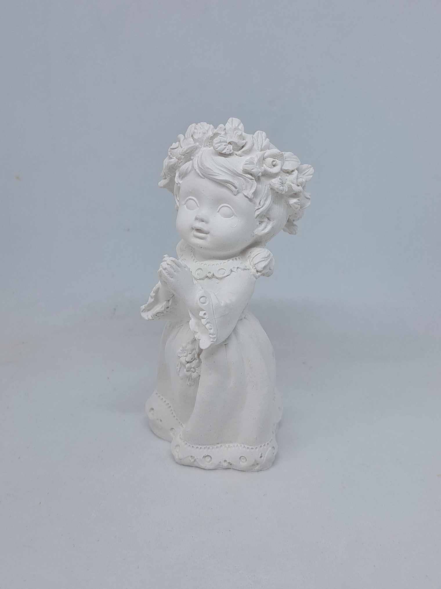 Uśmiechnięta i radosna dziewczynka ze złożonymi rączkami to nowość w moim sklepie. Świetnie pasuje jako dziewczynka komunijna. Pobudź wyobraźnię i stwórz swoją niepowtarzalną postać Anioła z tą jakże uroczą i niepowtarzalną dziewczynką .