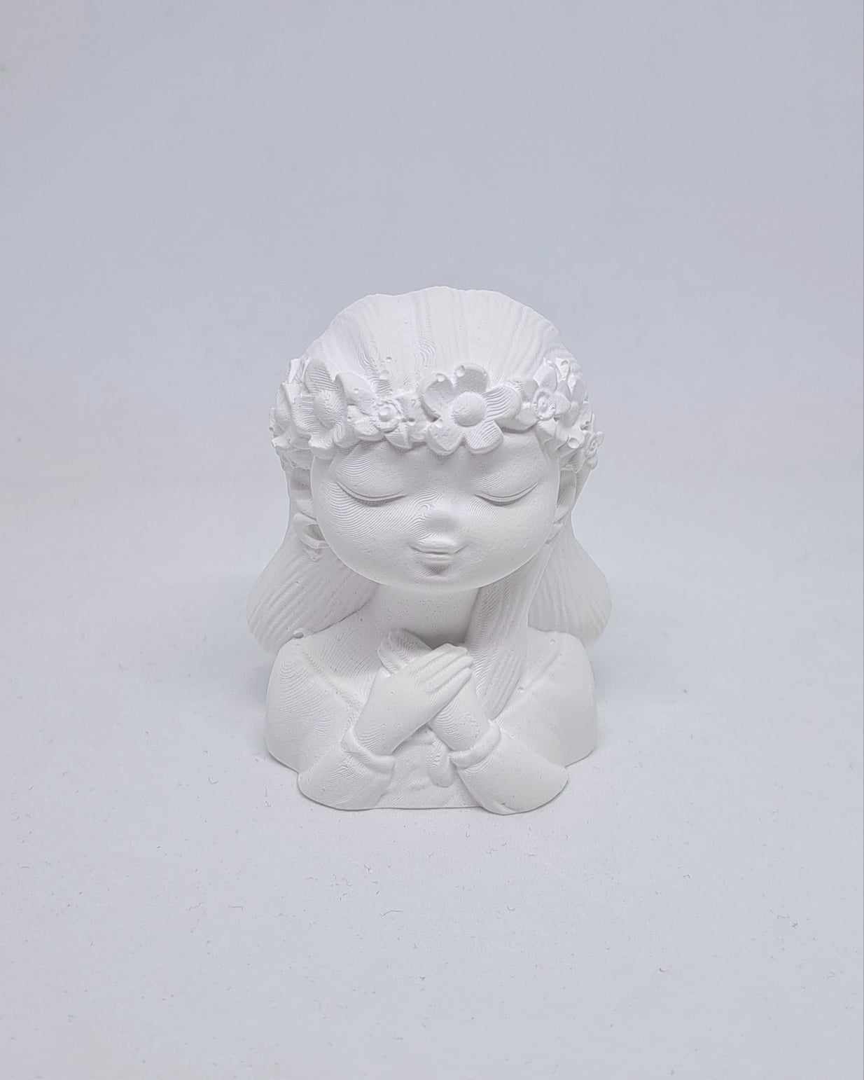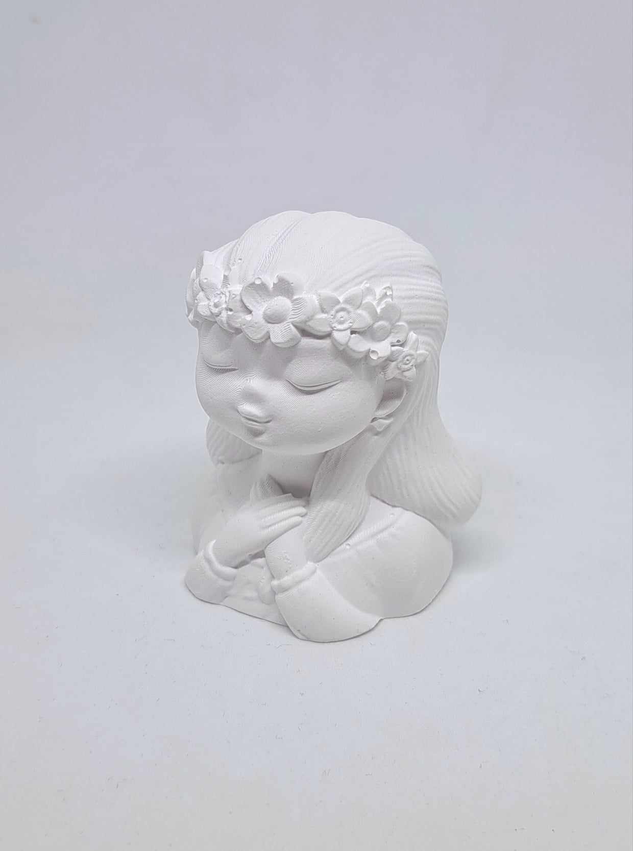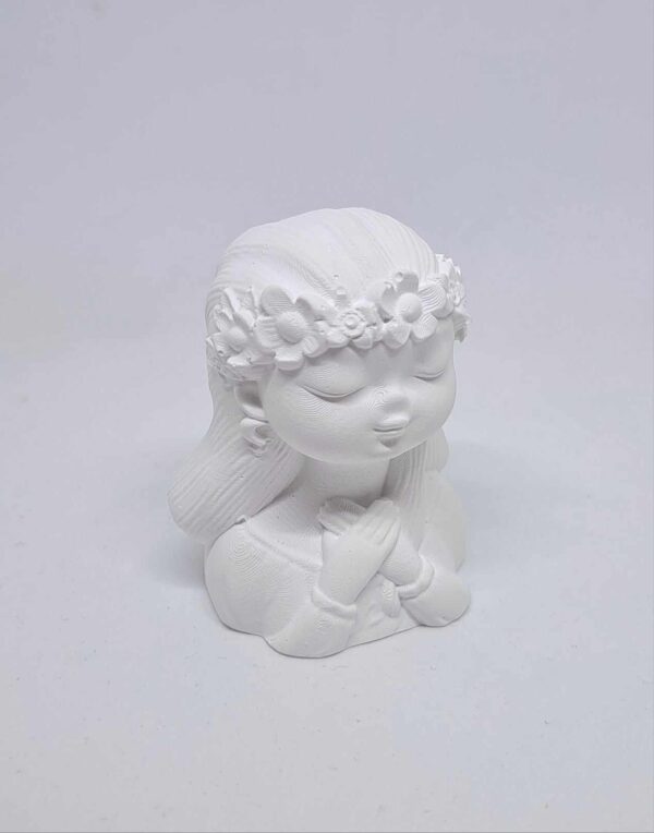 Jakże oderwać oczy od tej czystej, nieskazitelnej istoty ? Subtelna i delikatna – taka właśnie jest OLIWKA. To popiersie dziewczynki w wianku na głowie oraz złożonymi rączkami na piersiach idealnie sprawdzi się w tworzeniu aniołów komunijnych. Pobudź wyobraźnię i stwórz swoją niepowtarzalną postać z popiersiem Oliwka.