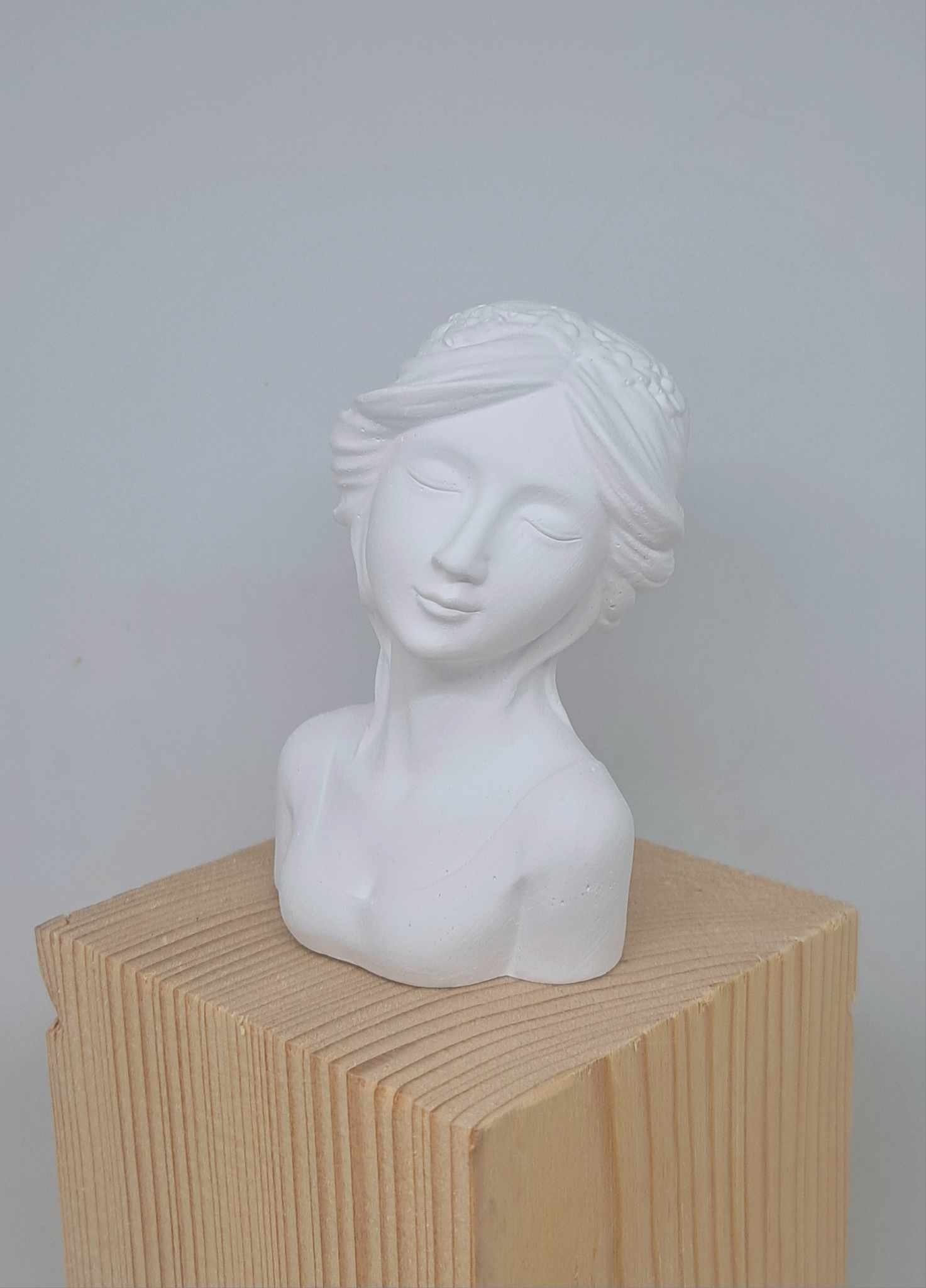 Ta czuła i troskliwa anielska twarz skupi na sobie każde spojrzenie. HELENKA zachwyca swoją naturalnością i uśmiechem… Jest jak mgła o poranku – lekka i czysta, przenika granice rzeczywistości i porywa swoim mistycznym pięknem. Z tym popiersiem praca z pewnością przyniesie Ci satysfakcję i radość. Pobudź wyobraźnię i stwórz swoją niepowtarzalną postać z popiersiem Helenka.