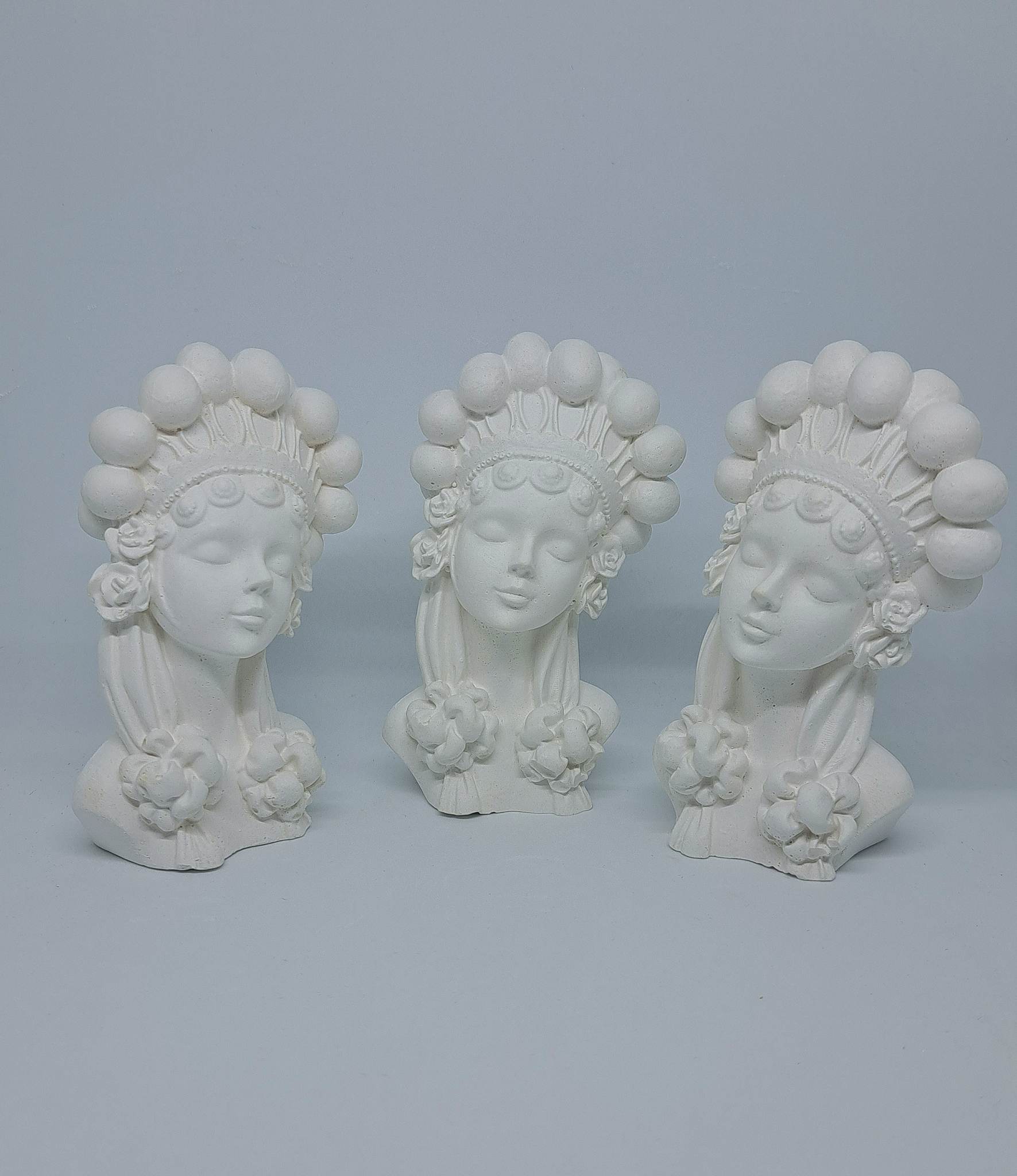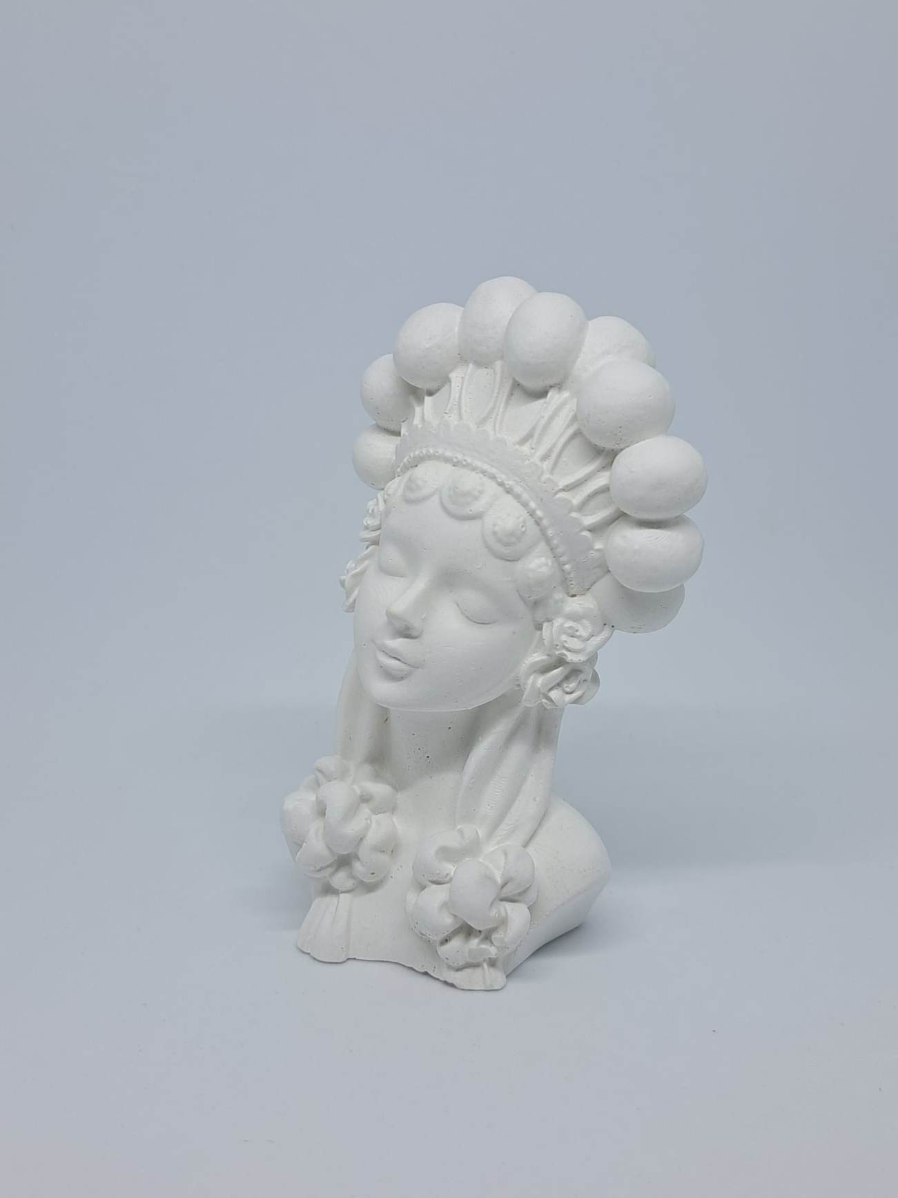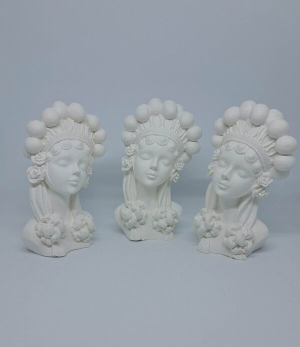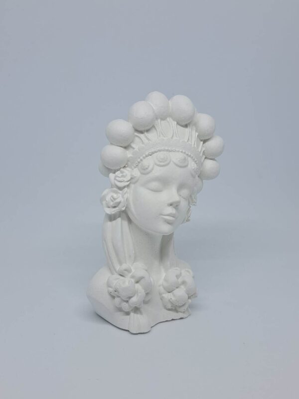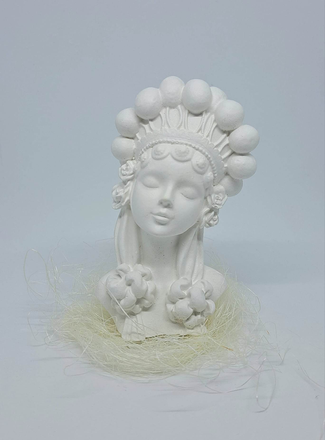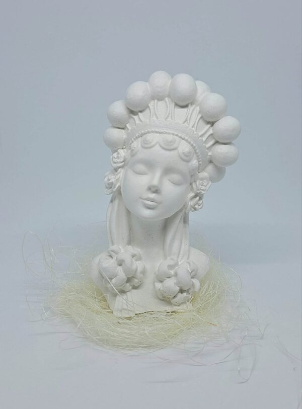 Masz już kilka aniołów z typowymi włosami i myślisz o czymś innym? Oto MARLENKA w koronie z pomponów na głowie, do tego małe różyczki i kokardy na włosach. Dziewczęce rysy twarzy i delikatny uśmiech przyciągną nie jedno spojrzenie. Pobudź wyobraźnię i stwórz swoją niepowtarzalną postać z popiersiem gipsowym MARLENKA.