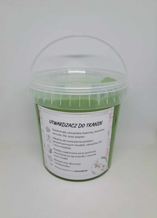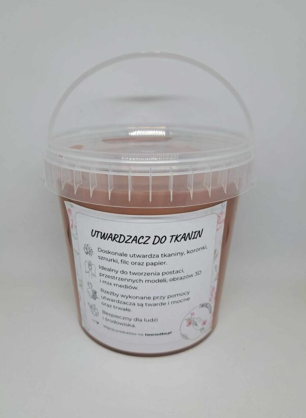 Czas schnięcia w zależności od ilości i grubości użytej tkaniny oraz temperatury ( zalecana 18-25 stopni ) wynosi 1-4 dni. Suszyć w przewiewnym miejscu, unikając bardzo wysokich temperatur. Gotowe, dobrze suche prace można malować, patynować oraz zabezpieczyć bezbarwnym lakierem akrylowym w sprayu.