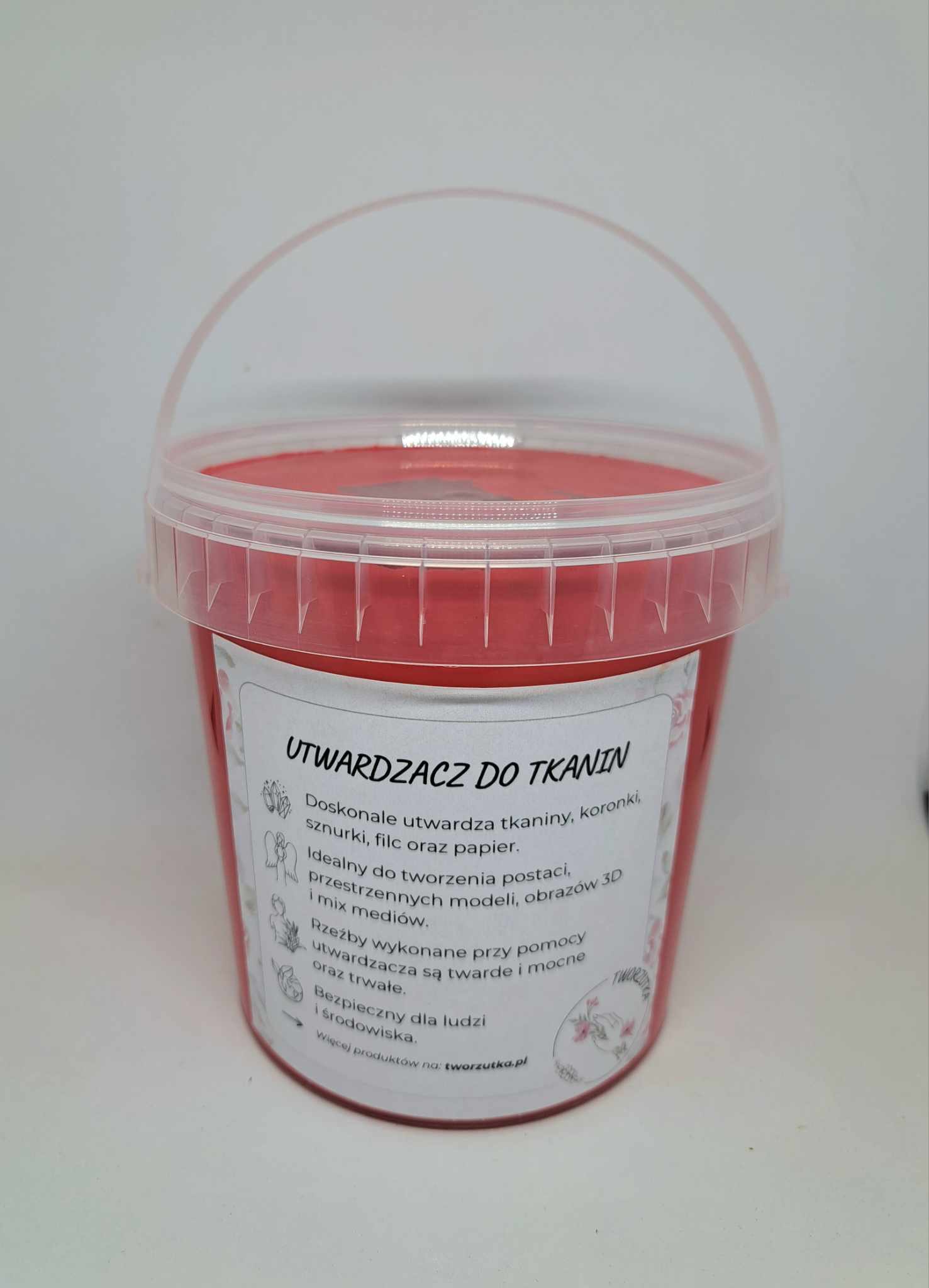 - Doskonale utwardza tkaniny, koronki, sznurki, filc oraz papier.