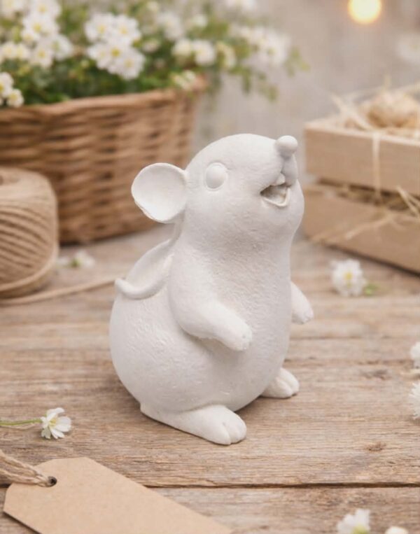 Urocza i wesoła myszka świetnie nadaje się na warsztaty plastyczne i kreatywne zarówno z dziećmi jak i dorosłymi. Znajdzie również zastosowanie w dekoracjach, zabawach oraz ozdobach DIY. Gładka powierzchnia ułatwia malowanie i zdobienie. Odlew jest estetyczny, solidny i gotowy do własnej aranżacji.